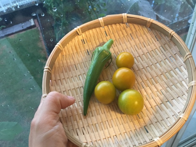 オクラはまだまだ出来そうですが、風で折れそう…