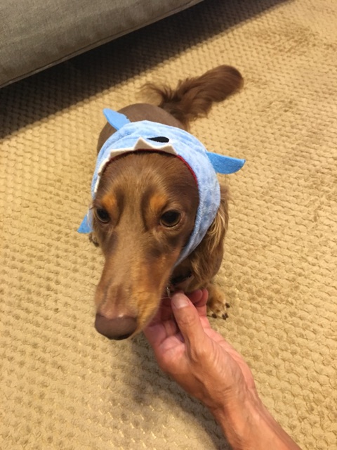 100円均一で一緒に購入したワンコの被り物。
